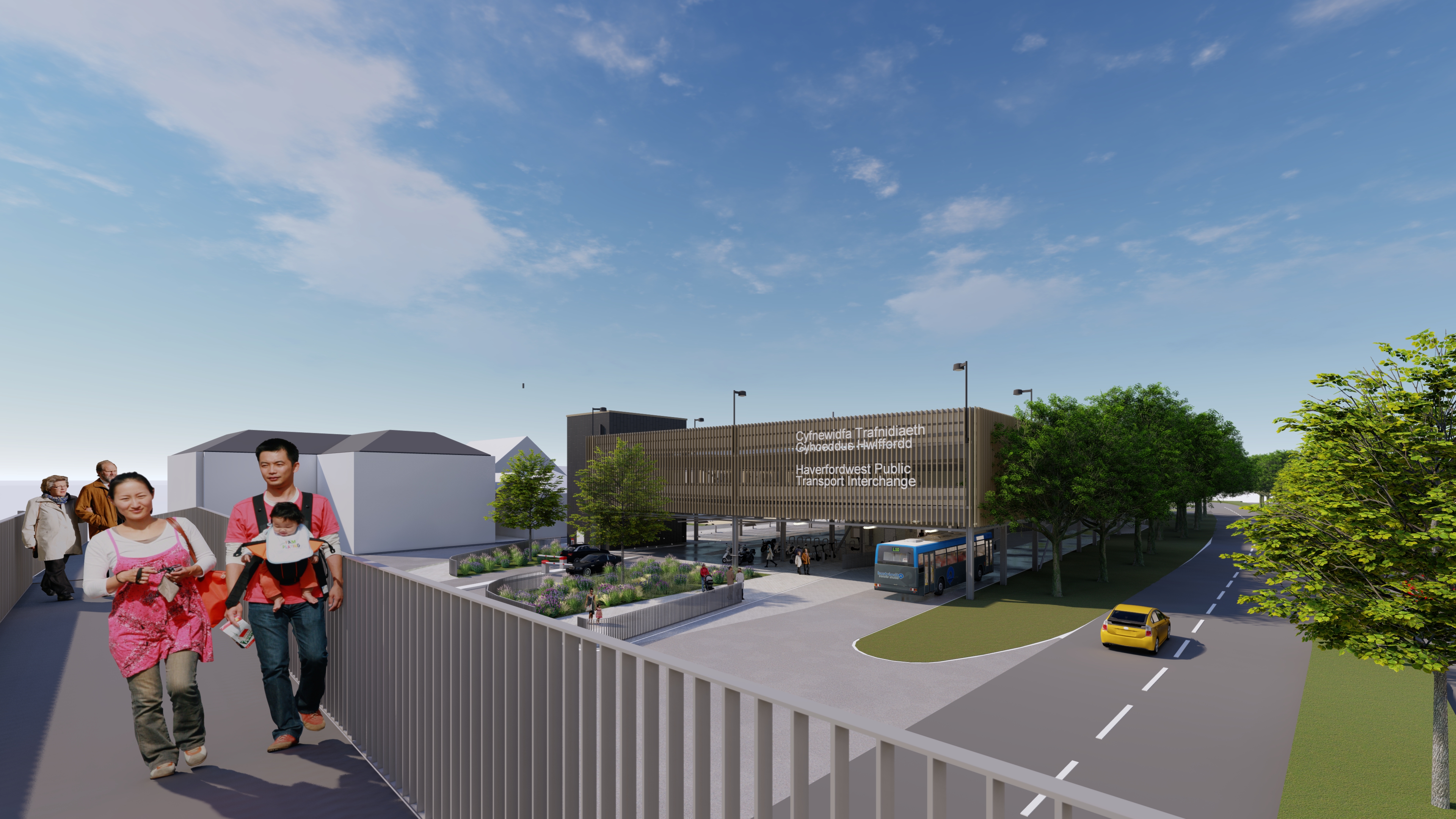 The Haverfordwest Public Transport Interchange scheme includes the construction of a three-storey bus station and multi-storey car park, to provide a new interchange provision for buses and coaches, with upgraded passenger facilities and a lightweight photovoltaic support structure.